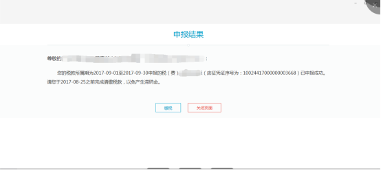 12、出現(xiàn)如圖所示申報(bào)結(jié)果,即申報(bào)成功。