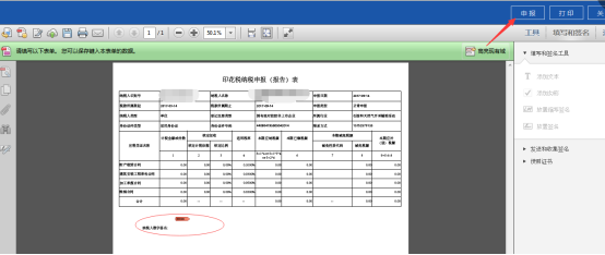 3、完成申報(bào)表,點(diǎn)擊右上角的【下一步】按鈕,跳到pdf預(yù)覽界面。