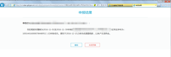 5、申報(bào)成功后會出現(xiàn)如下圖所示的申報(bào)結(jié)果。