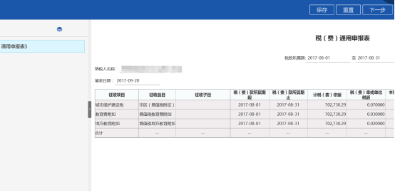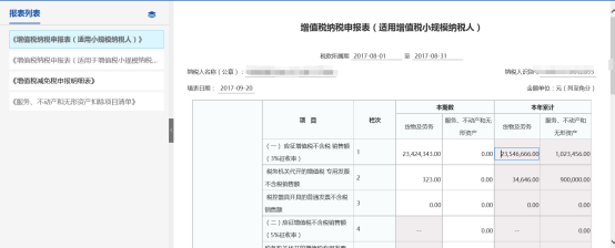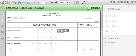 3、進入到申報表填寫界面,填寫數據進行申報,申報主稅成功后進入聯(lián)合稅費附加稅的申報。