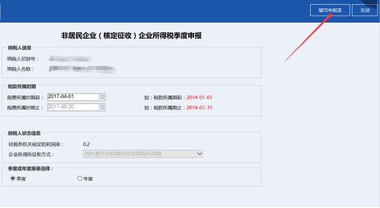 非居民企業(yè)(核定征收)企業(yè)所得稅季度和年度納稅申報(bào)納稅人崗位,使用此模塊完成非居民企業(yè)(核定征收)企業(yè)所得稅季度和年度納稅申報(bào)功能。