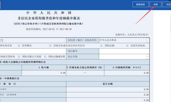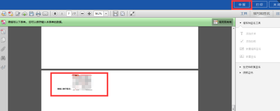 5、數(shù)據(jù)填寫(xiě)無(wú)誤后,點(diǎn)擊右上角的【申報(bào)】,生成PDF報(bào)表。