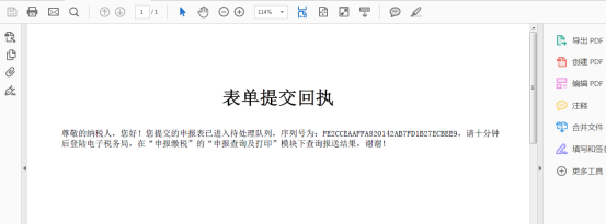 6、提交后出現(xiàn)如下圖界面,可查看表單提交回執(zhí),如下圖所示。