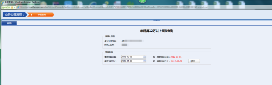 操作步驟:辦稅桌面--查詢打印--年所得12萬以上申報查詢--跳轉到原電子辦稅服務廳個稅12萬申報查詢功能,如下圖所示。