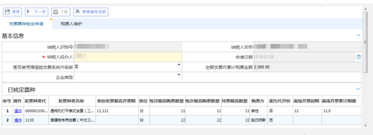 ①首頁→〖我要辦稅〗→〖發(fā)票使用〗→〖發(fā)票票種核定〗