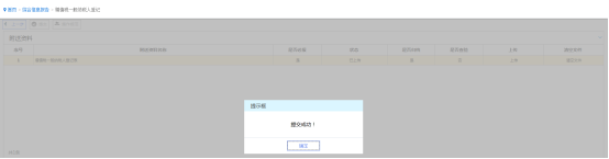 6、 附列資料逐個上傳完畢,點(diǎn)擊“提交”按鈕,系統(tǒng)將提示提交成功,該申請?zhí)峤坏蕉悇?wù)機(jī)關(guān)系統(tǒng)中,申請操作全部完成。