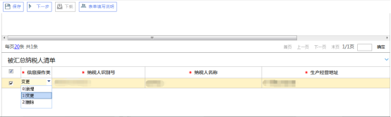 2、 如有已認(rèn)定的分支機(jī)構(gòu)清單,則在頁(yè)面自動(dòng)顯示,可點(diǎn)“操作”,或直接在“被匯總納稅人清單”中進(jìn)行增行,填寫(xiě)被匯總納稅人數(shù)據(jù)。
