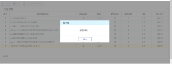 6 附列資料逐個(gè)上傳完畢,點(diǎn)擊“提交”按鈕,系統(tǒng)將提示提交成功,該申請?zhí)峤坏蕉悇?wù)機(jī)關(guān)系統(tǒng)中,申請操作全部完成。