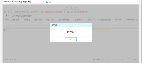 4、 根據(jù)業(yè)務(wù)需要維護(hù)【大氣、水污染物基礎(chǔ)信息采集表】附表,點擊“增行”,選擇稅源信息,點擊“確定”,維護(hù)相應(yīng)信息,點擊保存。