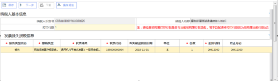 2     點(diǎn)擊“增行”,填入發(fā)票掛失損毀信息、填入掛失損毀情況說明。