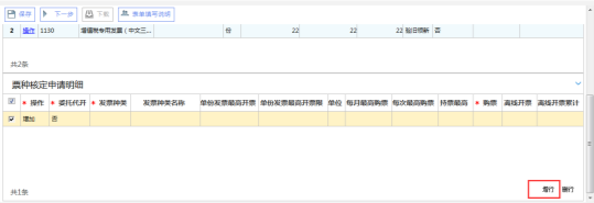 2、 在 “票種核定申請明細(xì)”中點(diǎn)擊增行,添加信息。
