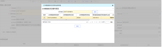 2、 點(diǎn)擊【項(xiàng)目編號】回車,查詢不動產(chǎn)信息,選擇需要進(jìn)行土地增值稅清算申報的不動產(chǎn)基礎(chǔ)信息,點(diǎn)擊 “確定”按鈕;或者輸入項(xiàng)目編號查詢,選擇數(shù)據(jù),點(diǎn)擊 “確定”按鈕。確定后,點(diǎn)擊附表樹,選擇需要申報的申報附表,填寫數(shù)據(jù)。
