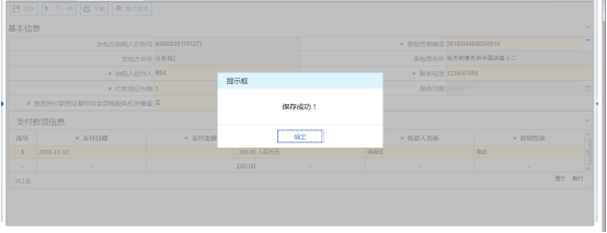2、 選擇原報告表編號,帶出支付款項信息表內容