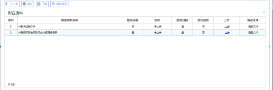 4、 點擊“下一步”按鈕,跳轉至上傳附送資料頁面