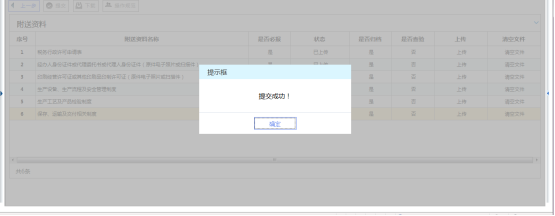 4、 點(diǎn)擊“提交”按鈕,系統(tǒng)將提示提交成功,該申請(qǐng)?zhí)峤坏蕉悇?wù)機(jī)關(guān)系統(tǒng)中,申請(qǐng)操作全部完成。
