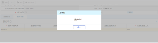 6、點(diǎn)擊“提交”按鈕,系統(tǒng)將提示提交成功,該申請(qǐng)?zhí)峤坏蕉悇?wù)機(jī)關(guān)系統(tǒng)中,申請(qǐng)操作全部完成。
