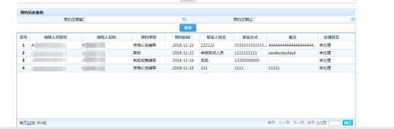 3、 可以在“預(yù)約歷史查詢”欄次,輸入預(yù)約時(shí)間起止,查詢已提交預(yù)約事項(xiàng)