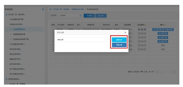 點(diǎn)擊“選擇文件”選擇要上傳的申報(bào)數(shù)據(jù)文件,并點(diǎn)擊“開始上傳”上傳申