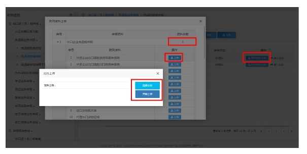 選擇對(duì)應(yīng)菜單名,點(diǎn)擊其后面資料份數(shù),點(diǎn)擊“上傳”按鈕,選擇需上傳的 ZIP