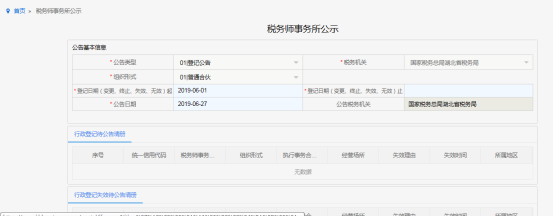 進(jìn)入稅務(wù)師事務(wù)所行政登記頁(yè)面,已做過行政登記的納稅人可以查看登記信息:
