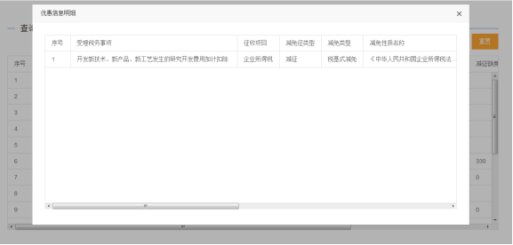 點(diǎn)擊對(duì)應(yīng)的減免稅審批事項(xiàng),可以查看該事項(xiàng)詳細(xì)內(nèi)容。如圖: