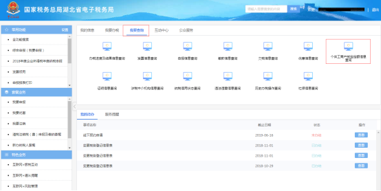納稅人在登錄后,通過首頁【我要查詢】——【個體工商戶核定定額信息查詢】進入。