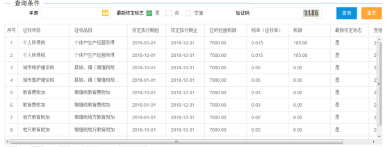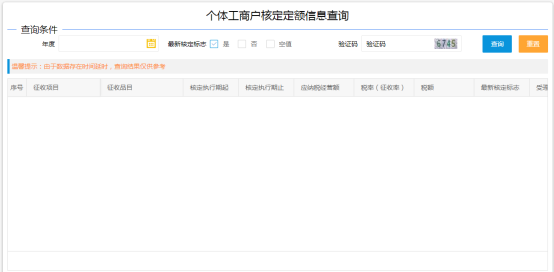 進入查詢界面,輸入驗證碼,點擊[查詢]按鈕,系統(tǒng)默認查詢納稅人所有有效的核定定額信息。