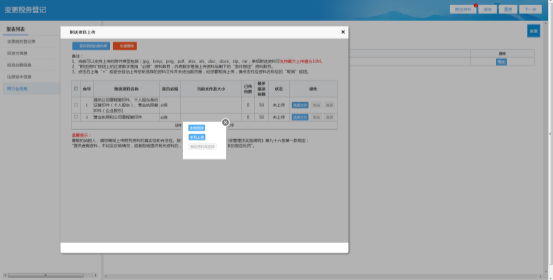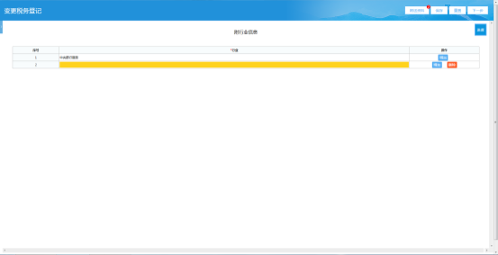 第八步:點(diǎn)擊附行業(yè)信息,彈出提示,點(diǎn)擊確定,進(jìn)入填表;在操作中點(diǎn)擊增加,增加一行;點(diǎn)擊刪除,則刪除已存在或變更的內(nèi)容;