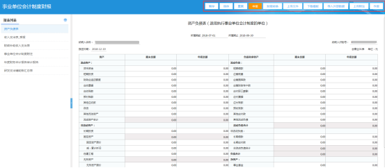 第二步:選擇“申報月份”更新稅費申報及財務(wù)報表報送列表,點擊“事業(yè)單位會計準(zhǔn)則”對應(yīng)的“填寫財報”按鈕,進入報表填寫界面。