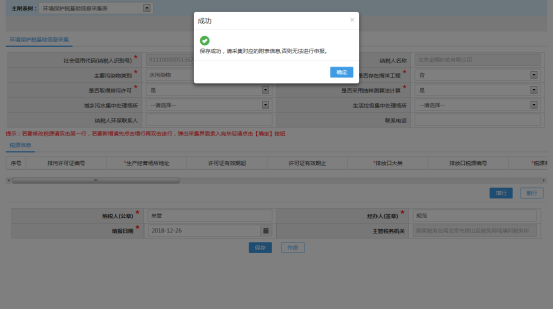 第四步:根據(jù)具體的情況填寫具體的附表,例如: 大氣、水污染基礎信息采集表,填寫信息,點擊保存