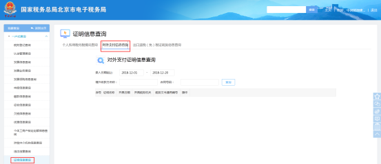 第二步:進(jìn)入證明信息查詢-對外支付信息查詢;