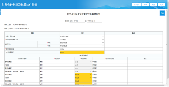 第五步:選中需要修改的會計制度(準(zhǔn)則),點擊修改,進入填表頁面;點擊保存,暫存填表信息;點擊重置,將表格還原到初始狀態(tài);