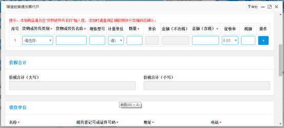 按照【我要辦稅】-【發(fā)票使用】-【發(fā)票代開(kāi)】-【增值稅專用發(fā)票代開(kāi)】的路徑進(jìn)入該功能模塊。如圖所示: