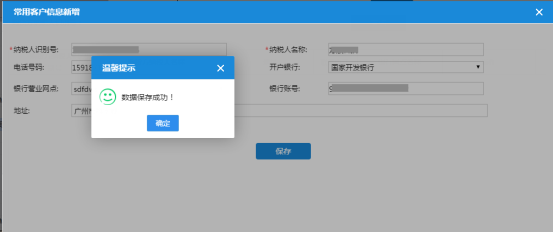 保存后的客戶信息,在填寫代開專票申請單時,填寫購方識別號后能夠自動帶出其他信息。