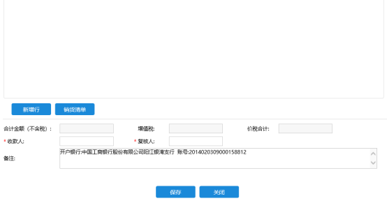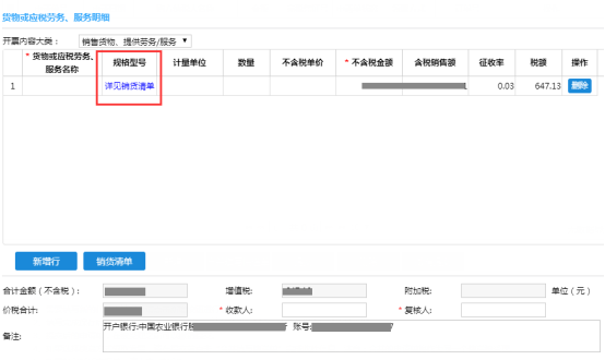 點擊“新增行”,或“導入銷貨清單”,可以填寫清單內容或從清單模板中導入清單內容。