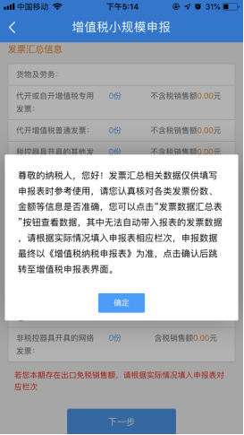 3、移動端直接進(jìn)入了發(fā)票匯總信息界面,展示納稅人當(dāng)期開具的發(fā)票數(shù)據(jù)。納稅人需要確認(rèn)發(fā)票信息是否準(zhǔn)確無誤。