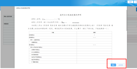 點擊”返回修改”時,系統(tǒng)返回<適用加計抵減政策的聲明>頁面,可再次修改此項提交內(nèi)容。