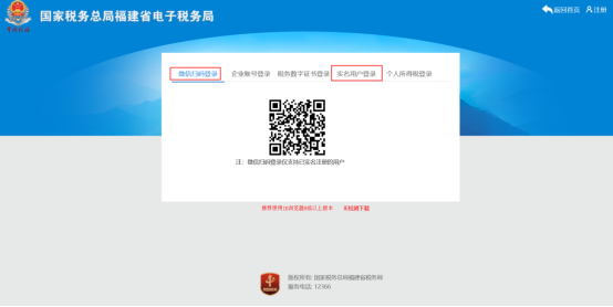 “國家稅務(wù)總局福建省電子稅務(wù)局”平臺支持個人用戶注冊,登錄方式有微信掃碼登錄、企業(yè)賬號登錄、稅務(wù)數(shù)字證書登錄以及實名用戶登錄四種登錄方式。