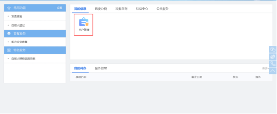 ? 選擇個人辦稅桌面中我的信息菜單下的【用戶管理】。