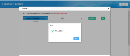 ? 點擊【選擇文件】,文件選擇之后再點擊上傳,系統(tǒng)提示文件上傳成功,點擊【確定】。