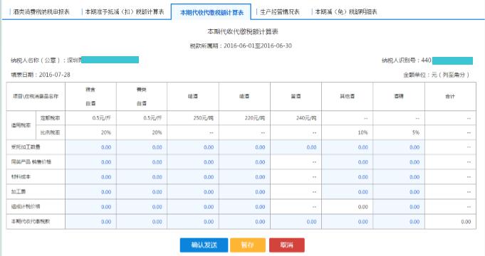 手動(dòng)輸入委托加工數(shù)量、同類產(chǎn)品 銷售價(jià)格、材料成本、加工費(fèi)、組成計(jì)稅價(jià)格、本期代收代繳稅款。