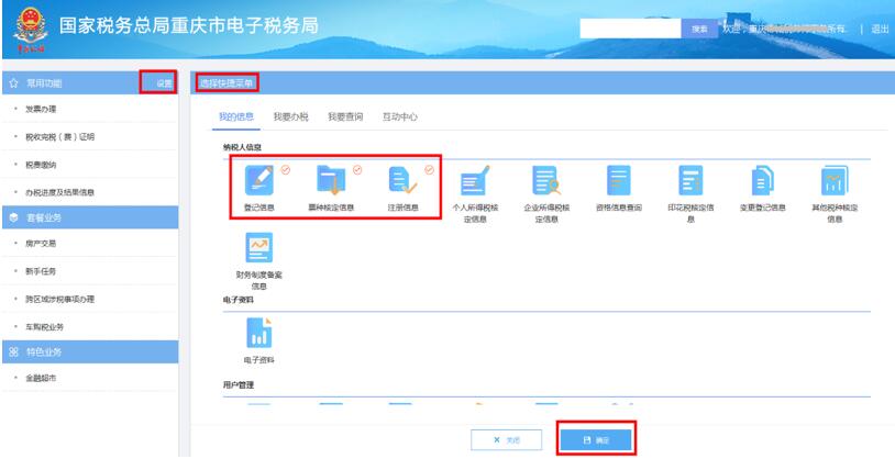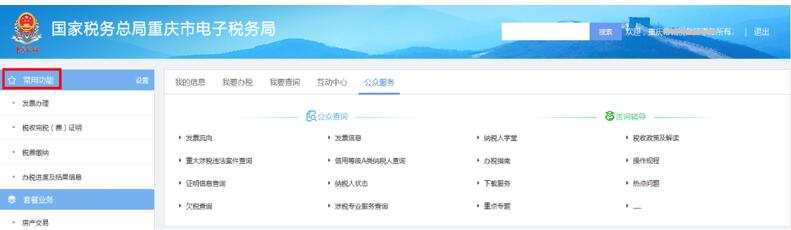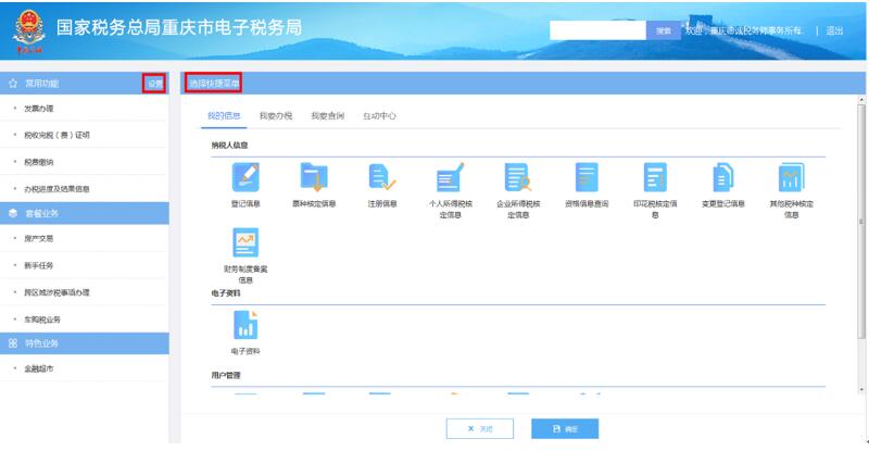 納稅人可針對操作習慣,將常用的菜單添加至常用功能處,進行業(yè)務操作時方便快捷定位功能。