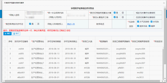 (6)提交采集【包括新增、修改、刪除】:完成新增、刪除、修改操作后,點擊環(huán)境保護基本信息采集表上的“保存”按鈕,提交采集數(shù)據(jù)。