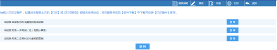 7、點擊頁面右上方的【打印】,即可跳轉(zhuǎn)至打印頁面,展示提交了的申報表,點擊申 報表后方【打印】按鈕即可打印對應(yīng)申報表。