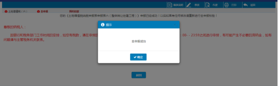 5、界面跳轉(zhuǎn)回上級界面,選擇【全申報(bào)】將已經(jīng)提交的申報(bào)表信息提交至稅務(wù)局端。全申報(bào)成功后會有“成功”字樣的彈窗提示。