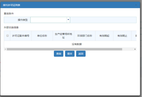3、如存在外部信息,點擊外部信息交換】,選擇“操作類型”,點擊查詢,獲取到相應(yīng)的外部交換信息,點擊提交