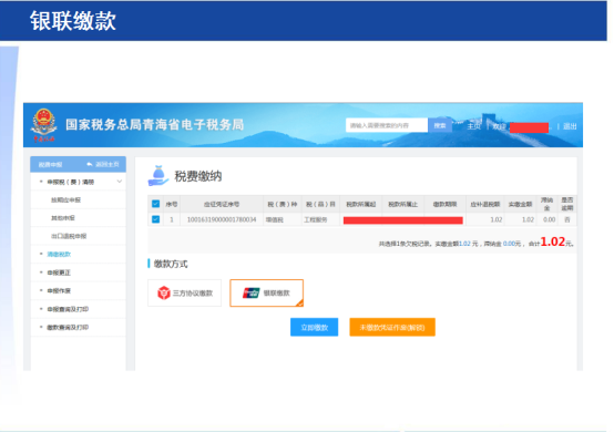 注:如未簽三方協(xié)議繳款方式會帶出支付寶、微信、銀聯(lián)繳款,如簽訂三方繳款方式會帶出三方協(xié)議、銀聯(lián)繳款。