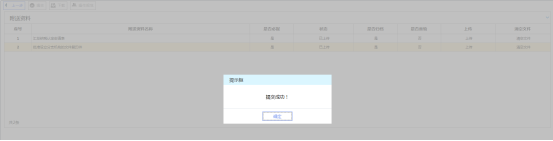 6、 附列資料逐個上傳完畢,點擊【提交】按鈕,系統(tǒng)將提示提交成功,該申請?zhí)峤坏蕉悇諜C關(guān)系統(tǒng)中,申請操作全部完成。