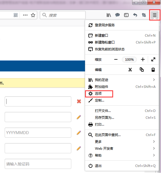 7、點擊火狐瀏覽器主右上角的“選項”子菜單。