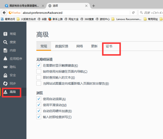 13、完成上述步驟后,關閉瀏覽器并重新使用火狐瀏覽器訪問 https://inv-veri.chinatax.gov.cn/網(wǎng)址,如果地址欄里出現(xiàn)綠色小鎖頭即表示成功安裝了根證書。